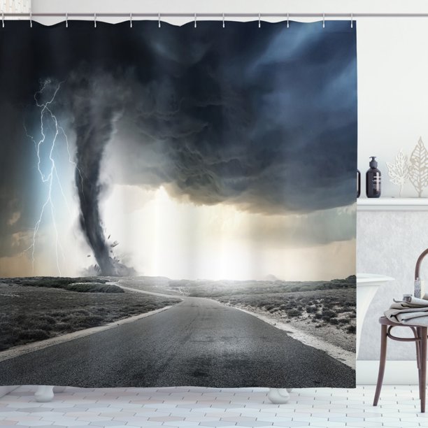 Nature Shower Curtain Black Tornado Funnel Gas And Thunder Rolling On The Road Fume Disaster Monochrome Print Fabric Bathroom Set With Hooks 69w X 75l Inches Long Grey By Ambesonne Walmart Com